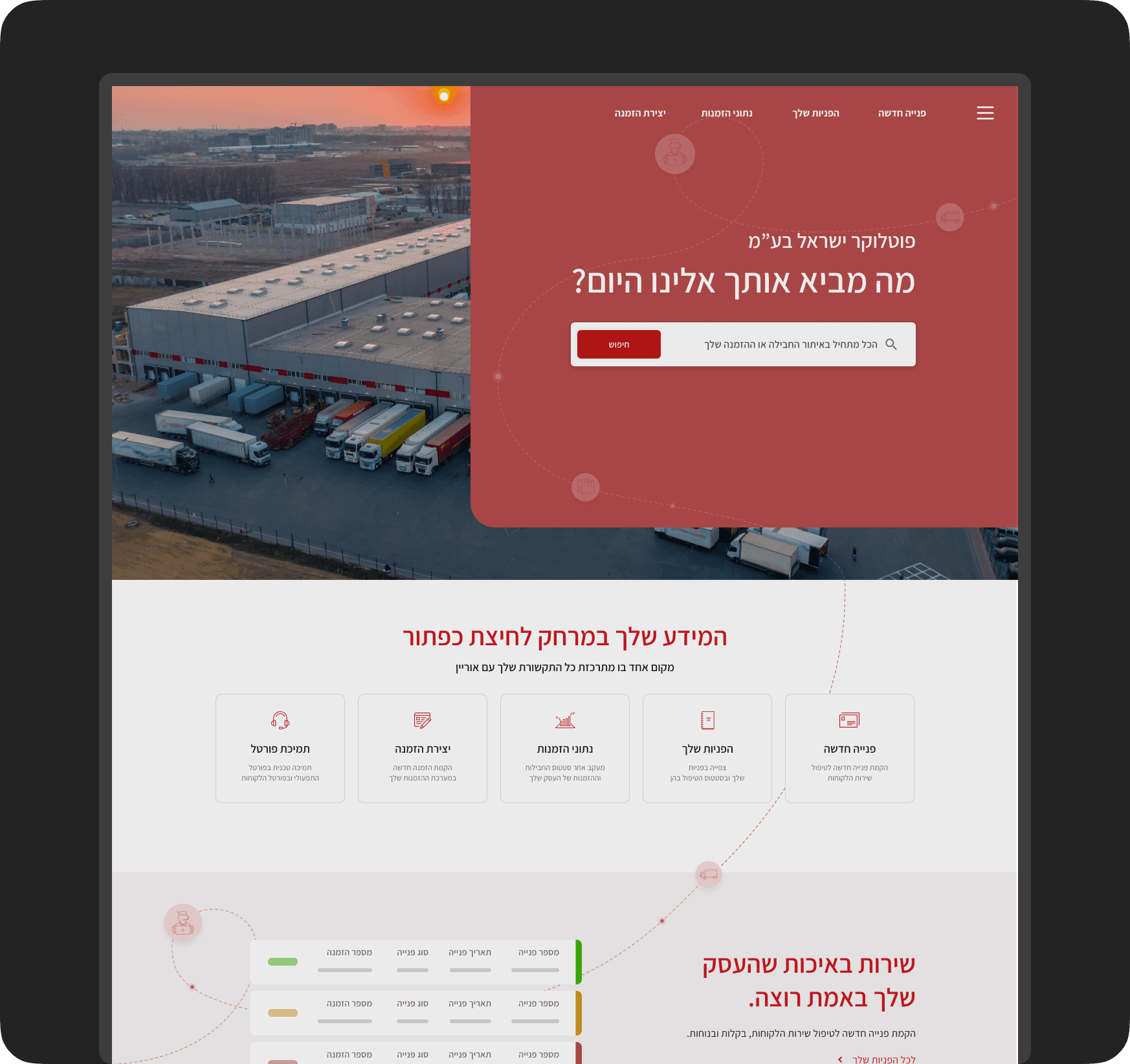 The research highlighted the need for a centralized dashboard, fast order search, clear shipment status, and an integrated support flowת which became the foundation of the product design.